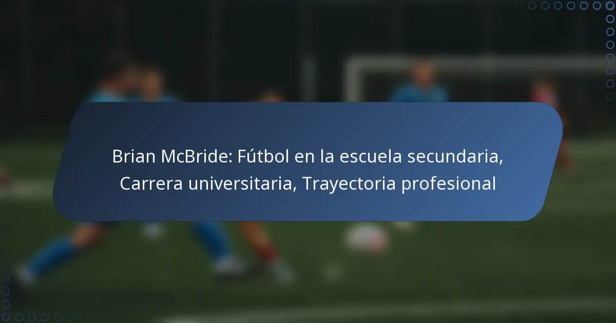 La carrera futbolística de Brian McBride está marcada por logros significativos desde la escuela secundaria hasta el juego profesional, mostrando su crecimiento e impacto en el deporte. Su trayectoria incluye actuaciones notables en la escuela secundaria, una exitosa carrera universitaria y un camino profesional que lo llevó a jugar en ligas importantes tanto en Estados Unidos como en el extranjero.